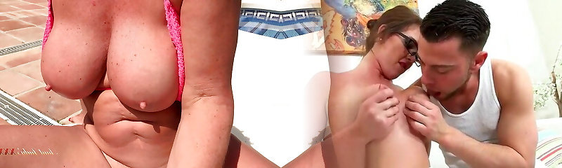 AuntJudysXXX - 64yo Buxom Mature GILF Mrs. Linda Bangs Her Gardener by the Pool