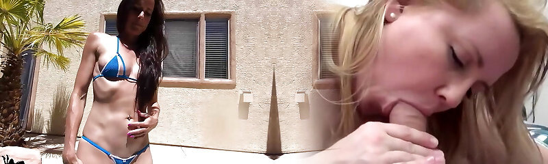 Blond Amateur Granny Beta Sucks Fat Cock By The Pool