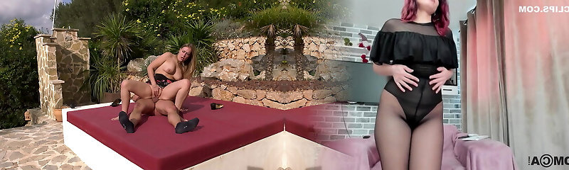Mature sandy-haired fucking and masturbating poolside