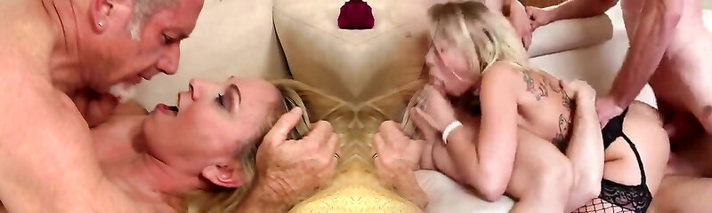 Hot mature group sex - Buxom mom and grannies sharing young