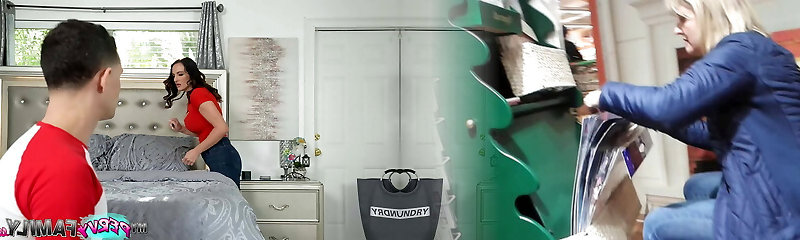 Super Hot Stepmom catch Son with Huge Sausage Bulge and seduce him to Fuck