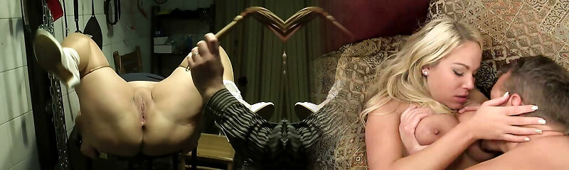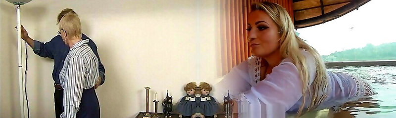 Young boy penetrates old blonde whore in the basement