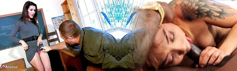 Skinny Female Cougar Teacher seduce to Fuck in Classroom