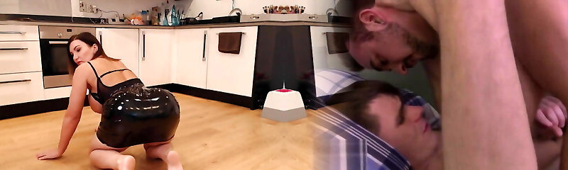 Cock horny wife in latex birthday blowjob for house friend