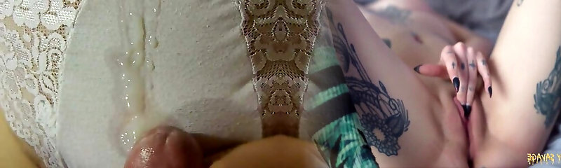 Dripping cum shot on kutwijf pussy in red sheer panty.