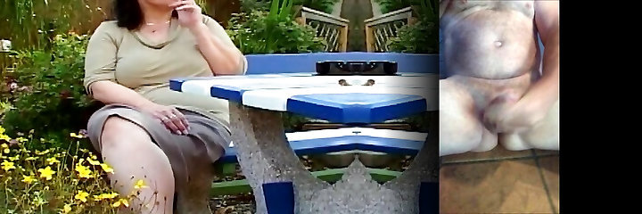 Kinky granny fucks pussy with dildo in outdoor solo