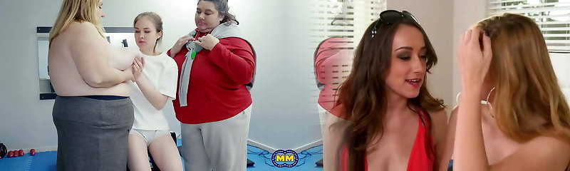 VERY Enormous BBW lesbians sharing young girl in gym