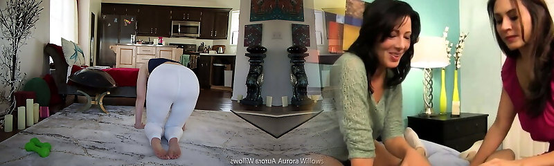 Aurora Willows, Behind the scenes yoga workout in milky yoga pants and nude feet, no panties.