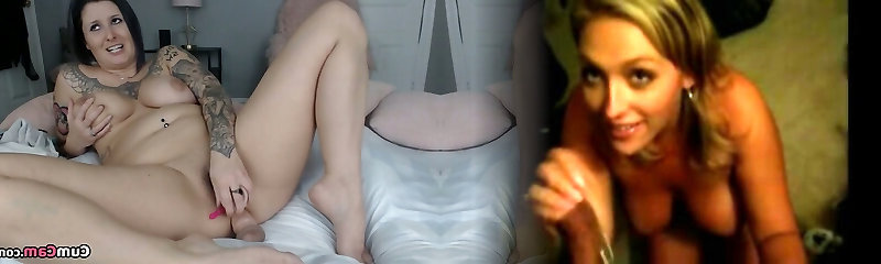 Tattooed woman with natural hooters pleasuring her hairy cunt