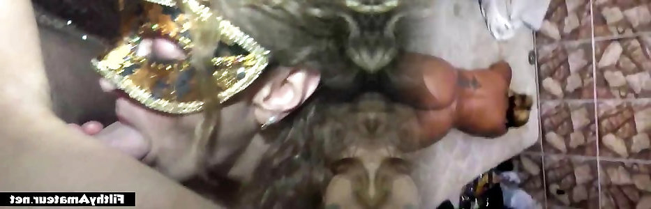 Ginormous titted dark-haired mega-bitch performs epic suck off to her husband