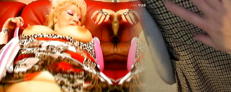 Light-haired unclothes off sheer red lingerie wanks in retro nylons