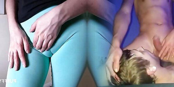 She teasing him and wet pussy sliding cock until he really huge cumshot