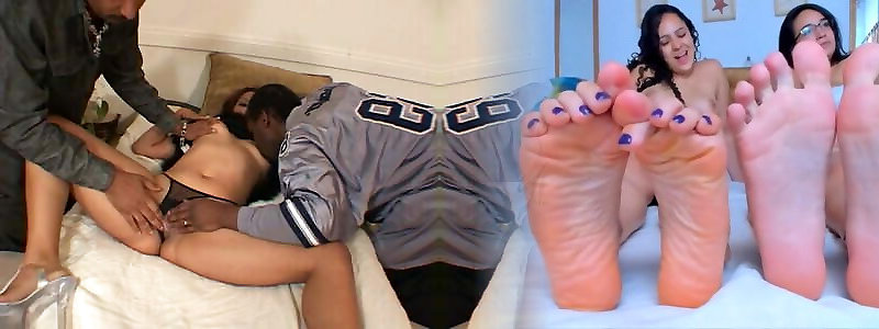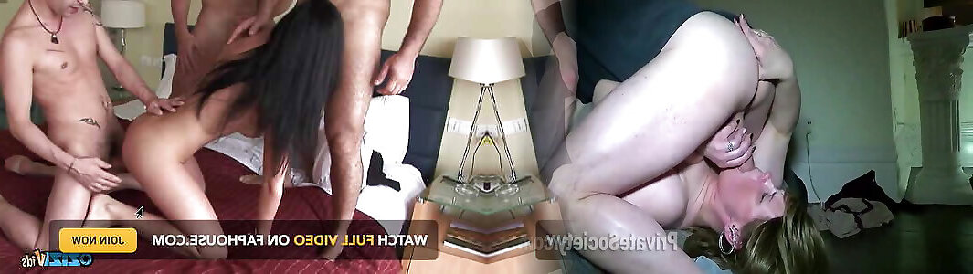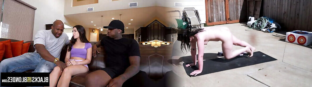 Raquel has a double penetration by two black guys while hubby looks on