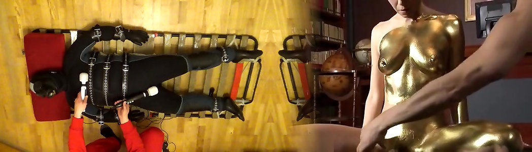 Two vag step chat in leather bathing suits play with each other