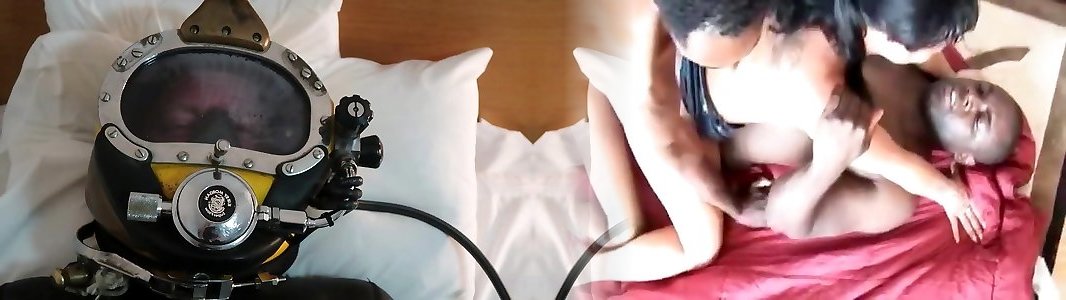 breathplay with vintage diver mask and rebreathing bag