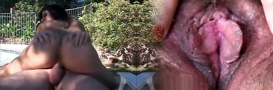 Jizm-drinking babe has some fun with a draped stallion poolside