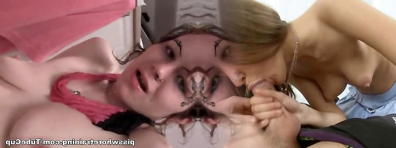 Youthful tart swallowing pee