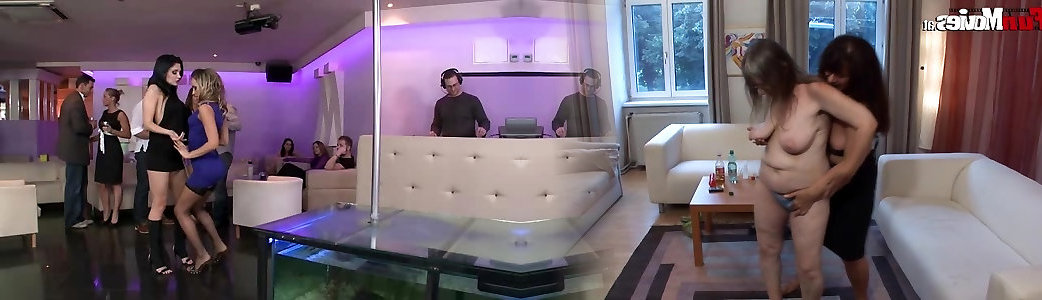 Two chicks in the pub enjoy with three spears MMFF