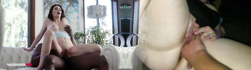 Big-boobed mom Sasha Sean wedged by two xxl ebony schlongs