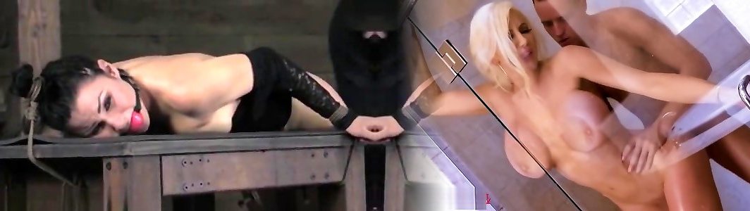 Hogtied platinum-blonde tantalized in girlfriend mom in shower space