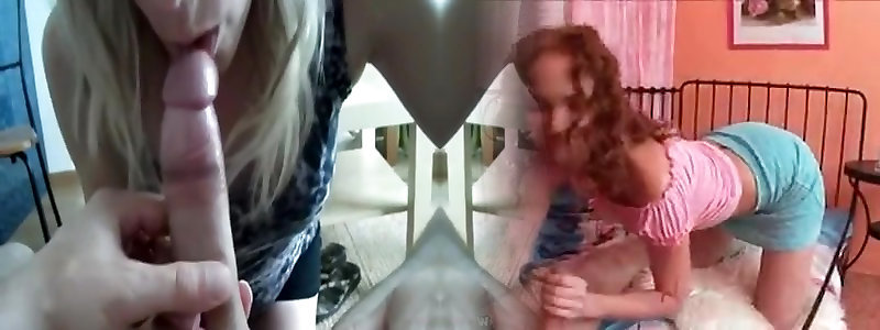 2 man sausage thirsty light-haired supersluts take turn deep throating a instrument