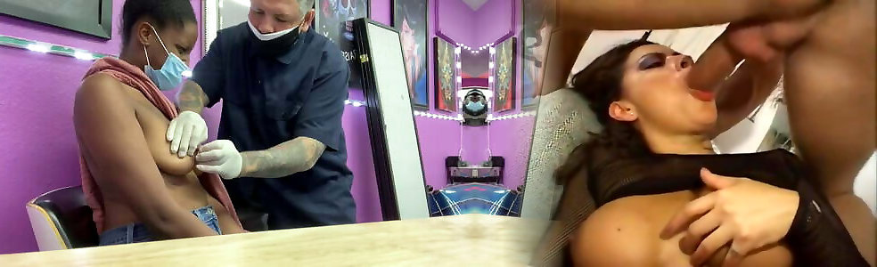 Ebony huge-boobed Youtuber gets nips pierced