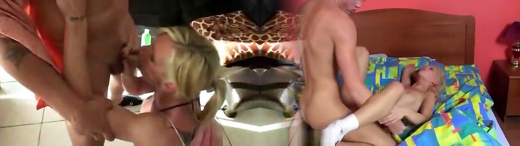 Sexy blonde grandma takes two cocks at once