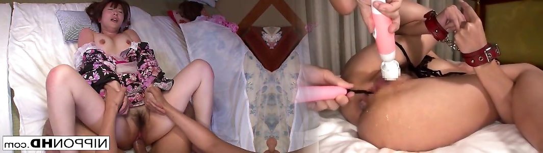 Asian geisha gets pummeled while her girlfriend is loosening