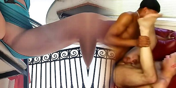 Condom couple loosening in total ebony spandex enclosure