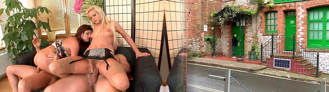 Glorious blondes in pantyhose share dude&039;s rock hard contraption in the living bedroom