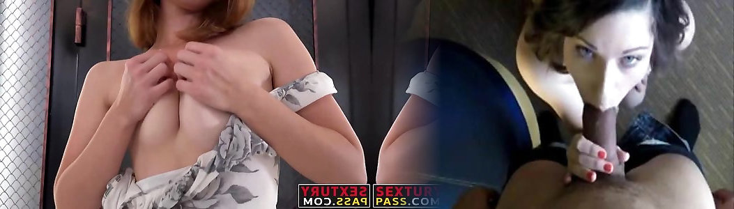 Alluring bright auburn bombshell gets on all fours down to suck surely appetizing contraption