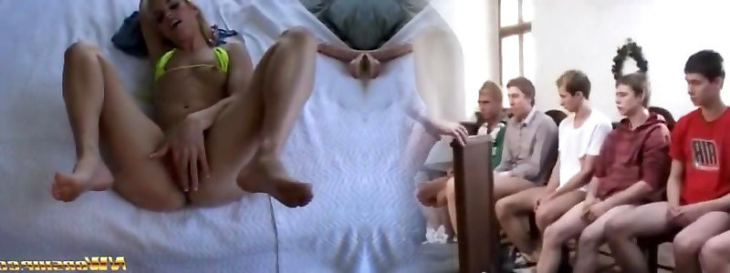 Light-haired Petite Jug Nymph Is Plowed By 2 Big Peckers
