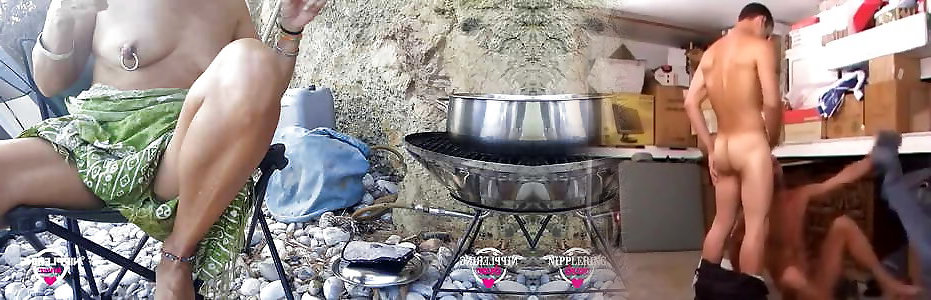 nippleringlover horny milf cooking naked outdoors at nude public beach extreme pierced nipples and pussy