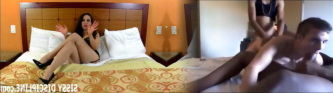 Sissy in chastity gets fucked by mistress part1