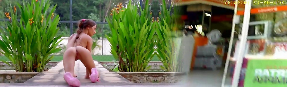 Teenage honey gets naked outdoors and teases