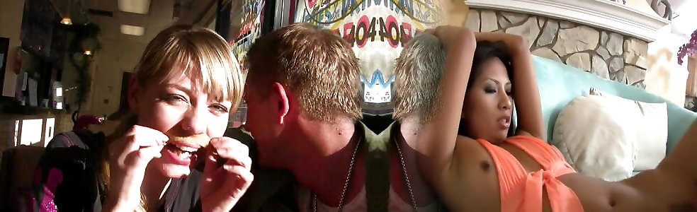 Pretty nymphs are spreading their gams to take several sausages