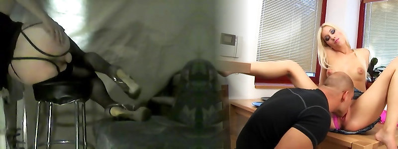 Gorgeous blonde spreads her gams and gets her cunt tongued, then gets ravaged