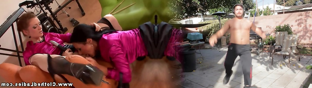 CFNM femdoms cockriding in three-way
