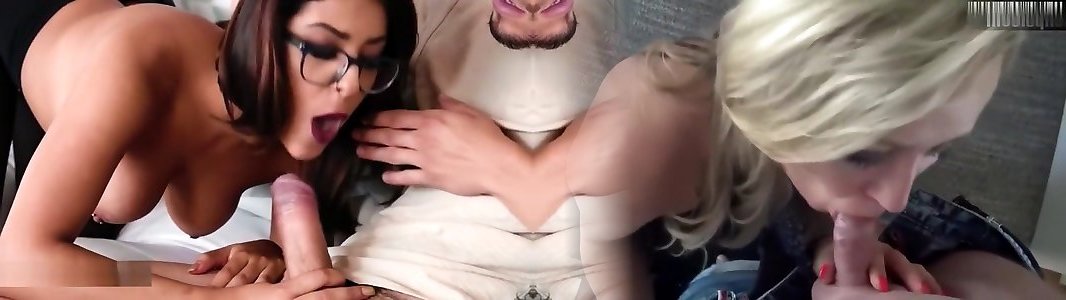 TUTOR4K. Slutty tutor with natural tits is enjoying 2 hard cocks during the lesson