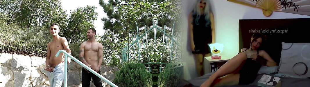 two strong cocked ruscle invites slutty blondie for a threesome party
