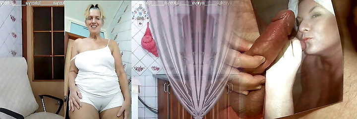 Depraved housewife Lukerya excites her fans during the online broadcast spreading her legs wide.