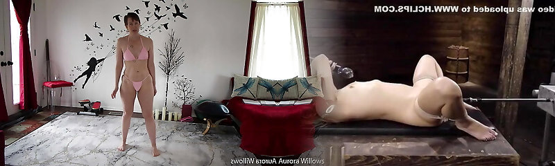 Aurora Willows stretching in panties