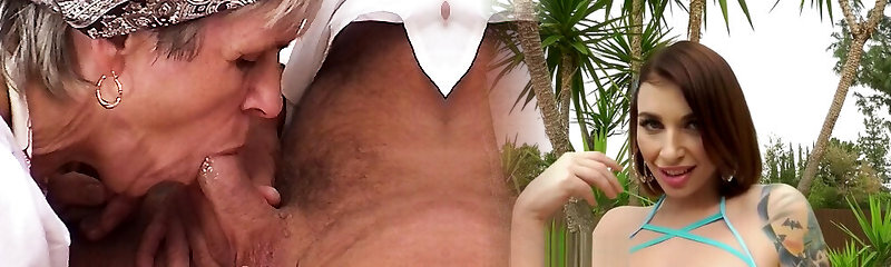 Porking busty old grandma from both ends