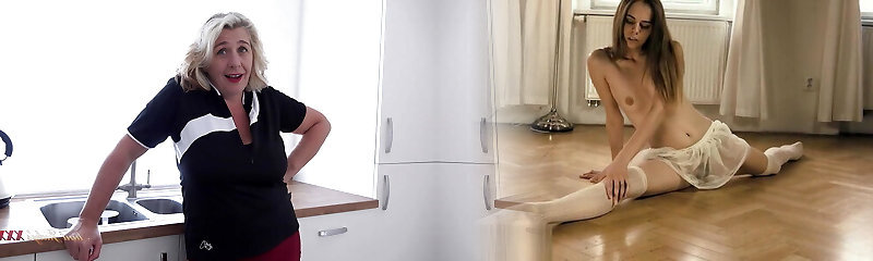 Teasing by huge bouncing tits and clean-shaved pussy fingering MariaOld cougar