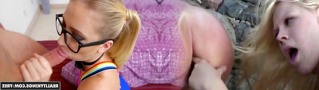 sexo-positivo platinum-rubia nerd allie james inhala un salami en el pasillo