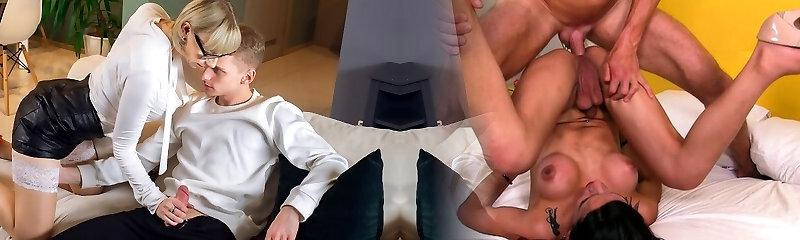 milf with glasses and high boots seduces young cock