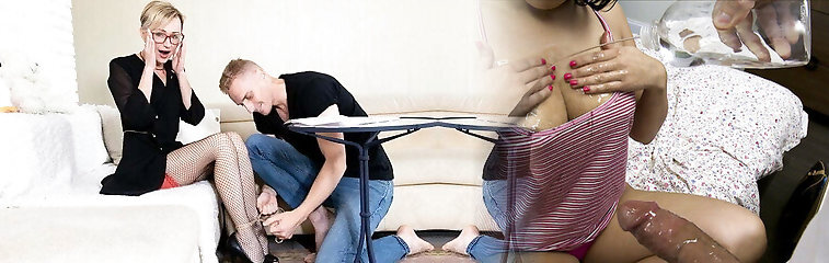 step sister FEMDOM taunting stepbrother, cbt, inserting HUGE DILDOS deep in his ass, butt plug, glass dildo, jizz shot