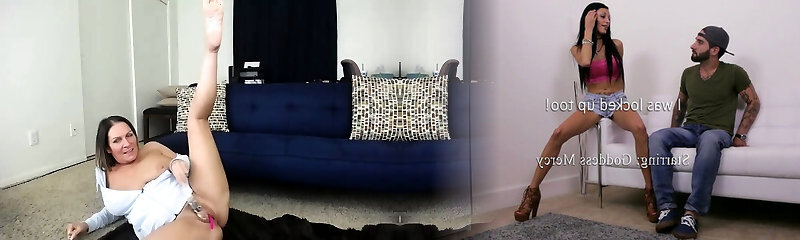 She spread Her Pussy wide to be satiated by Her Sissy in swimsuit and stockings