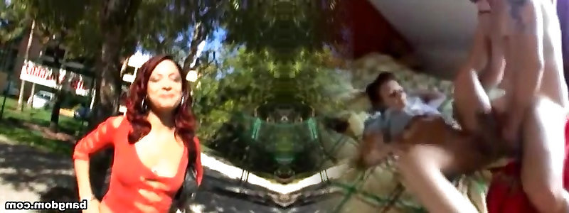 yam-sized reggiseno-insaccatrici redhead ottiene retro frustato