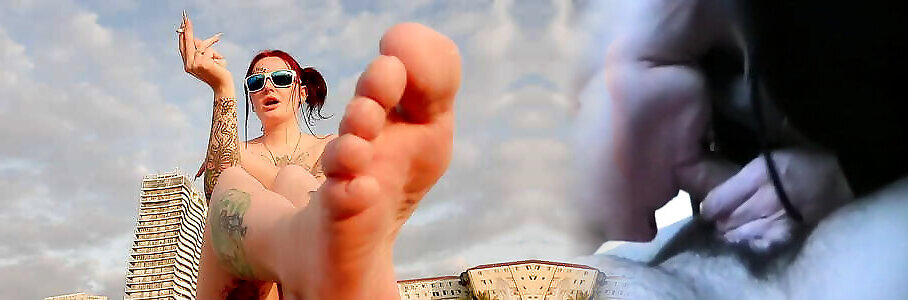 sborrata sui piedi: luce femdom in vacanza